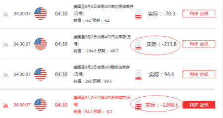 消息面 本周三(9月7日),WTI原油10月期货收涨1.49%,报45.50美元/桶;布伦特原油11月期货收涨1.52%,报47.98美元/桶。冻产乐观情绪和供应过剩担忧在市场角力的过程中引领价格出现了走出了震荡的行情,美元止跌也对油价上限形成压制。 9月8日04:30公布的美国至9月2日当周API数据显示,API原油库存下降1208.5万桶,远超预期