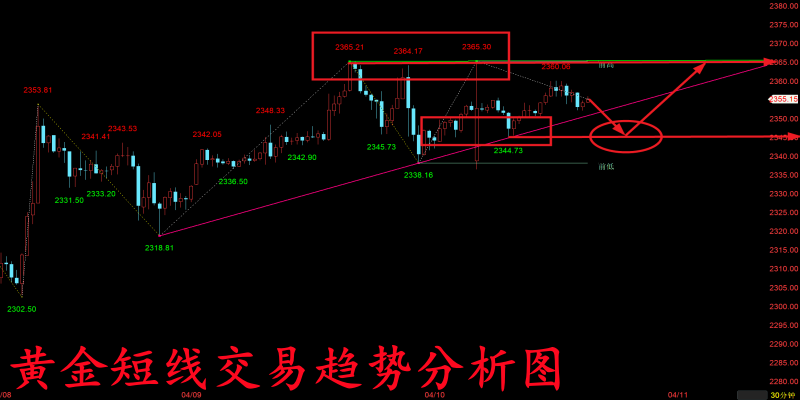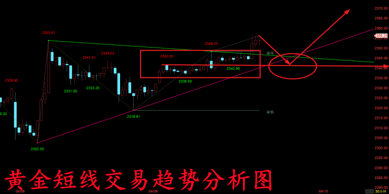 黄金昨天整体走势还是很强,亚盘上涨,欧盘延续破新高,所以美盘前的回撤就是诱空,昨天的几波多单做的还是不错的,欧盘的2345多盈利,随后行情涨至高点美盘前肯定会有回撤,给出了2360的空单迎来下跌收割,然后美盘再次在2350以及2346逐步做多,多单最终目标还是拿到了上方2355-2358附近。目前的行情操作上依旧还是回撤就是多,做多更稳健,做空感觉不踏实,大家不要觉得行情很高了,怕做多不安全,你有这个想法就错了,不要用自己的认知以及历史点位去分析行情,不要拿涨幅去看待走势,涨的高从来都不是看跌的理由,跌的多也从来不是看涨的逻辑。 从目前的行情波动再来看,金价的每次冲高刷新新高之后,虽然回落力