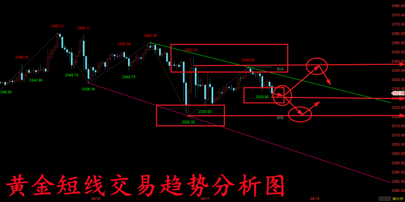 黄金终于开始走了一波一泻千里的空头了,自从三月下旬上涨开始,只见黄金小幅度回调大幅度上涨,从未看见有过大幅度下跌,而本周五后半夜终于是给看空的朋友们点了一盏希望的明灯,但结合周四最低点2325关口来看,当前这波空头能否坚持下去还得进一步验证,所以下方还持有更低点空单的朋友们还需要先耐心的等候一下了,至于目前短线做交易的投资朋友,现在这个点位我们就先暂时不考虑去追空了,短线可以先考虑做多去看行情反弹的一个高度,随后在以上方高点压制去再度布局空单为主! 结合本周高低点和整体技术面的波动来看,黄金目前下方重要的低点支撑就在2320-2325关口,一旦这个位置再度跌破那么预计空头将直接冲刺下方230