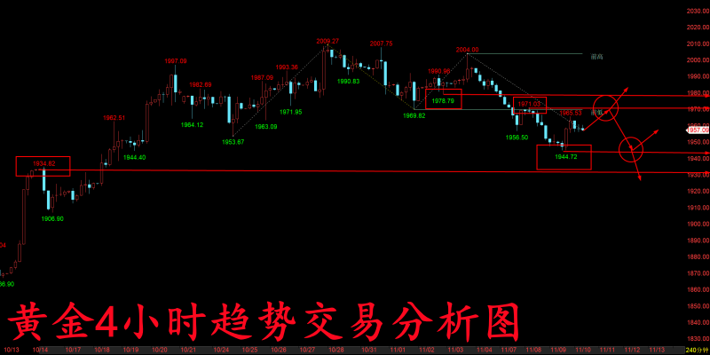 黄金这两天的行情,想必惹得大家相当苦恼,行情基本就是反弹等一天,下跌一瞬间,整体可谓是完全不给多头一点反弹的机会,而其实大家从前期巴以冲突开始上涨的时候来看就可以理解了,那个时候行情从1900关口附近也是一路反弹上去,基本也是每天下跌几个点,但是反弹十几个点,和这次下跌的行情也是如出一辙,那么我们后续交易上无疑直接就看下方1900关口目标即可,毕竟现在的黄金市场,行情真可谓就是怎么涨上去就怎么跌下来! 结合目前黄金的点位来看,短线操作上上方最佳做空的点位已经来到了1954-1955关口附近,而下方的支撑已经由昨日的1953关口下移到了今天的1938-1940关口,而本周空头的最终目标更是已经
