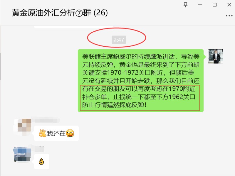 黄金市场本周较为关键的美联储利率决议和鲍威尔讲话已经结束了,而自利率决议数据公布后,鲍威尔的讲话也是再度让黄金进一步的试探了下方关键支撑1970关口,但最终空头还是没有强势延续,而我们团队和我们一起在凌晨两三点还仍在交易的实盘交易客户也在1970附近开始布局了补仓多单!而周三全天来看,整体我们布局的短线多单也是基本全部完美获利出局,也是准确的把握住了每一波反弹的利润! 那么接下来,在美联储乃至美国经济数据各方面的利空干涉下,黄金短线也仿佛是基本结束了当前市场持续看空的氛围,那么接下来周四周五我们短线交易上可以再度以触底反弹逐步做多为主的思路进行下去了,而当前黄金下方关键的做多低点目前仍在19