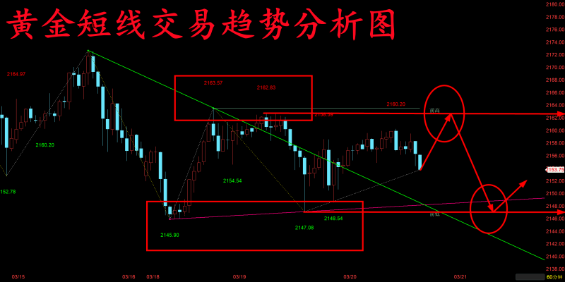 昨日黄金自从周一凌晨高点2160-2162附近盘整后开启下行,第一波最低触及2147一线;随后二次反弹最高到我们计划空单点位2158后开启回落,最低回撤到2148附近,尾盘还是没有打开区间,市场空头扩张力稍显不足。 市场当前重点再度放在了明天凌晨如期公布美联储最新的利率决议消息上,目前不管是美联储还是市场都处于一种相对纠结的状态,利率决议以及随后的鲍威尔讲话关注的重点是年内到底降息2次还是3次! 若和之前预期一致降息3次并且从5月开始降息,那么美指预计将进一步回落,金价则可能进一步走高;反之,若降息预期下调,那么近期的涨势极有可能正式终结,金价预计则将延续跌破2150-2140关口开始正式开