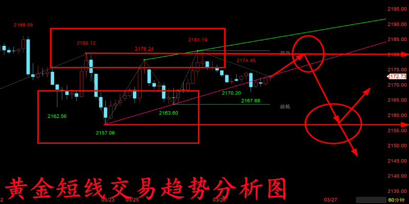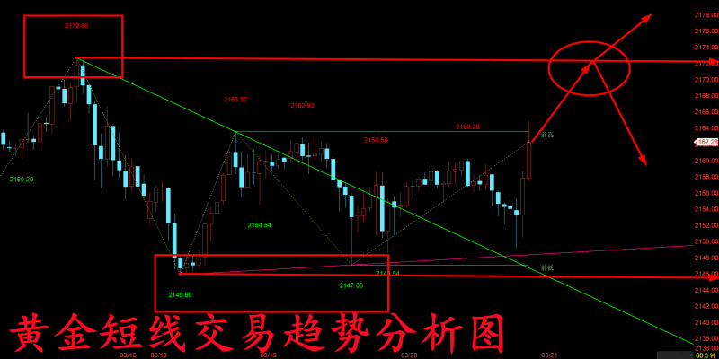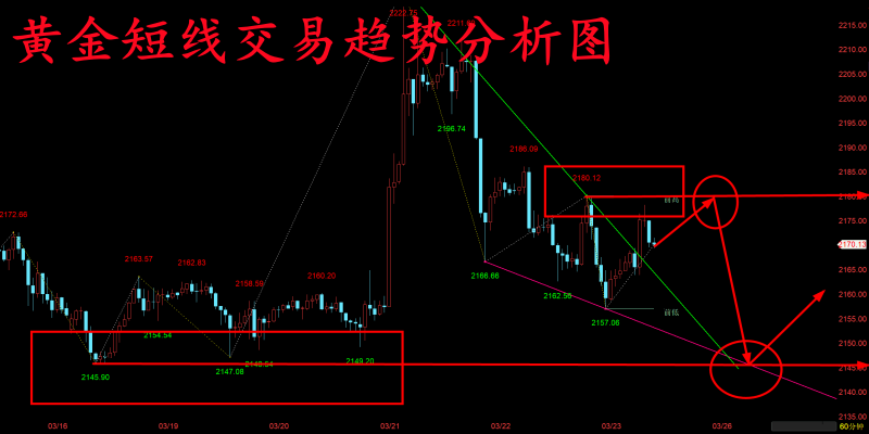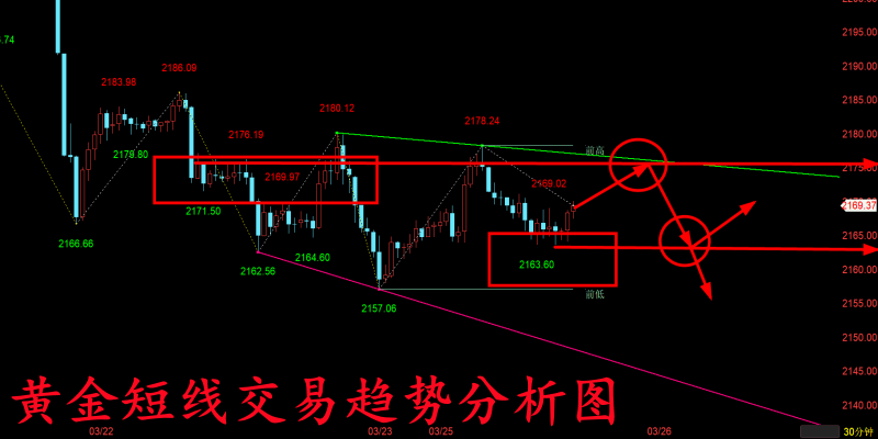黄金其实今天的行情交易来看,做短线交易的投资朋友还是比较好把握的,毕竟短线多空都可以做,而今天也是周一,加之周末虽有避险情绪影响,但对于今天开盘行情影响并不大,所以今天市场机构出手让行情走单边的概率不大,那我们今天老老实实的把握短线多空来回交易的利润就可以了! 那么晚间我们短线可以暂时以小区间2163-2175这个区间去交易为主,上下偏移3个点左右就行,今晚具体需要关注的下方支撑暂时放在2160-2163附近就行,而上方首先还是看2173-2175附近压制就可以,整体今晚上下多空来回把握利润为最佳! 黄金今晚交易点位分析: 1、黄金当前反弹触及上方2173-2175关口压制可以考虑做空,止损