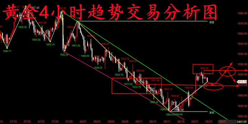 从本周市场消息面影响来看,本周美国将有大量重要经济数据公布,包括职位空缺、ADP就业和非农就业数据,这些数据都将让市场再度深入了解美国当前就业形势,而美国第二季GDP修正值,以及个人消费支出(PCE)物价指数和ISM制造业数据也将公布,这也将进一步的帮助市场投资者确认美国经济走向,并且尤其是周五的非农就业报告可能会为黄金注入一些新的活力,提供一个早期信号,表明美联储的紧缩周期已经结束;而目前市场预计失业率不变,非农就业人口料将减少,继而会对金价造成一定提振,因而从本周整体操作来看,黄金短线仍有再度反弹的需求。 从黄金技术面来看,上周四周五黄金连续承压1923关口回落,这个位置是从1987下跌