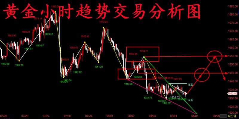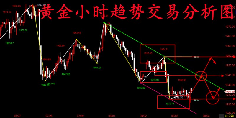 投资市场并不会简单的朝着预期的方向进行,通往成功的路都是曲折的,而一旦走反,则将会失去方向,进入了循环,行情也同样如此,趋势是一定的,但是绝对不会简单地朝着预定方向一直走,期间会出来曲折而动摇人的内心,这时候就需要好的心态来面对,守得初心,方得始终,投资市场需要找寻合适的机会,需要持之以恒的守住方向,然后再去收获利润! 当前黄金整体从4小时结构来看,短线仍然暂时维持在1928-1948的区间内,不过在本月份开盘之后,黄金一直维持在震荡下跌,高点先后从1987一路跌到现在,而目前非农利多之后黄金也只突破了上方第一压制点1942-1945关口,上方短线仍然承压1948-1954第一关口压制,说明