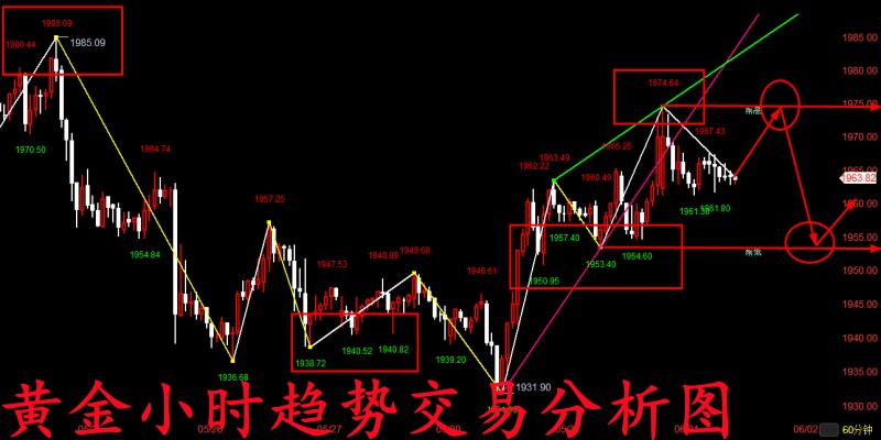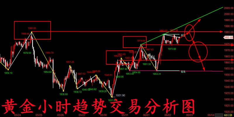 做投资,亏损不可怕,市场上的二八定律是绝对存在的,可怕的是毫无意义的亏损;套单也不可怕,可怕的是没有跟对老师而越套越深;市场不可怕,可怕的是不会分析市场、跟随趋势而盲目做单的投资者们。赚不到钱是有原因的,如果你现在亏损的很严重,很迷茫,感觉看不到希望了,请及时作出调整,没有不盈利的投资,只有不盈利的操作,跟对一个老师,受益一生。 黄金昨日开盘价格便从1967高点震荡回落至下方低点1953关口,随后开始反弹最后也是再度回到了1968高点附近,而随着美盘数据公布后黄金价格也是快速下跌至1958低点后又再次拉升至最终高点1983一线,直到凌晨才开始出现回撤并在今日早间最低回落至1974一线,最终日