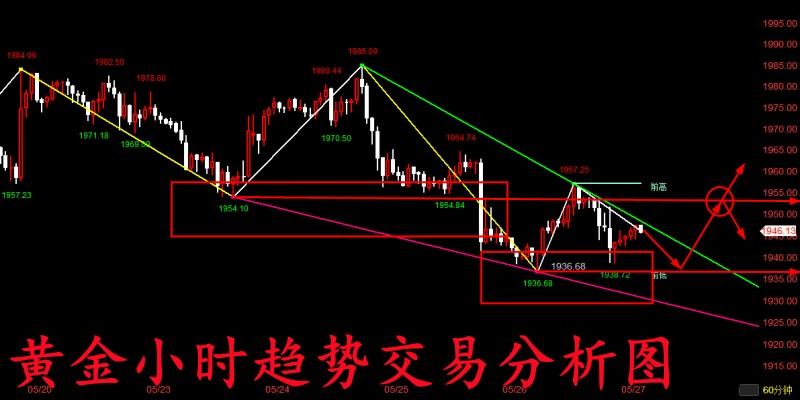 做投资,亏损不可怕,市场上的二八定律是绝对存在的,可怕的是毫无意义的亏损;套单也不可怕,可怕的是没有跟对老师而越套越深;市场不可怕,可怕的是不会分析市场、跟随趋势而盲目做单的投资者们。赚不到钱是有原因的,如果你现在亏损的很严重,很迷茫,感觉看不到希望了,请及时作出调整,没有不盈利的投资,只有不盈利的操作,跟对一个老师,受益一生。 黄金今天白天经历了震荡上升,但美盘时段突然加速下滑,直接跌破了下方1960关口的支撑位,然而该支撑位的跌破也是直接导致行情进一步下跌,下方也是再度测试了新低1939关口附近,尽管目前短线有一定程度的回弹,但上方暂时受到1955-1958关口一带的阻力,这表明短线黄金
