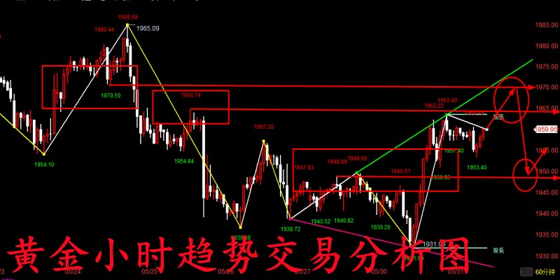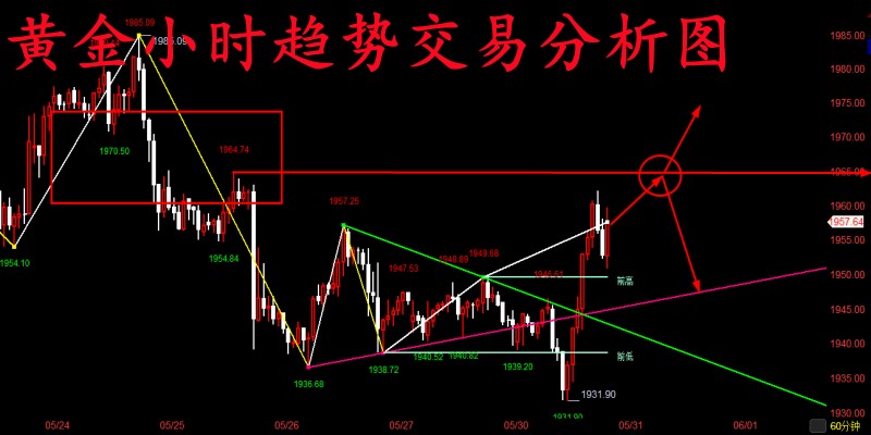 市场没有永远的赢家,也没有永远的输家,不管你分析或者盘面把握的再好,也不能每次大仓的去做单,因为市场是不可控,随时可能发生一些意料之外的事,我们来这个市场是来投资的,不是来博的,我们虽然是在做大概率的事件,但是也会有小意外发生。我们不能一味的盲目自信,总是将自己的全部仓位去博,这样做单是很危险的,也许你前面盈利很多次,但是当你一次的大仓亏损将会将你前面所赚的钱,可能要全部亏进去,到头来一场空,所以要将自己的仓位严格控制,我们不求一夜暴富,只求稳定盈利。 黄金昨日价格从1954-1955附近开始反弹至1965一线附近,随后便在晚间美盘开盘数据公布后,黄金价格快速跌破1954-1952前期关键支