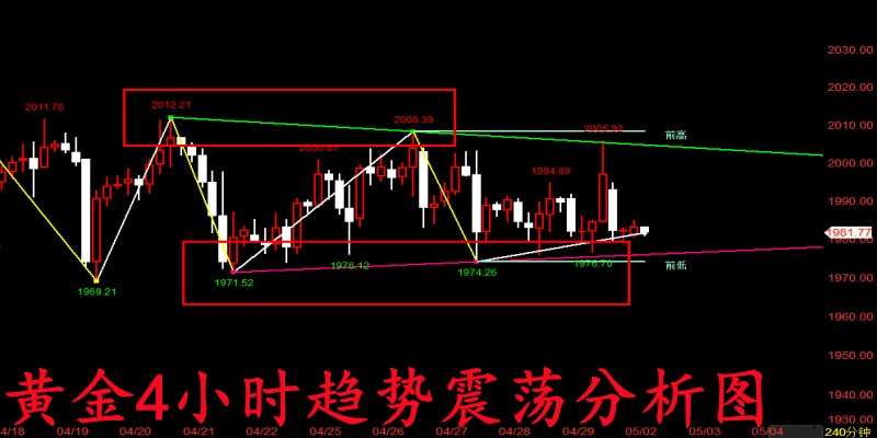 如果你从未做过投资,想学习了解,又或做单不顺,投资经常资金缩水,想学技术分析看盘,那么你可以来我这里考察看看,金融投资行业,形态变化万千。我所希望的就是用自己的专业知识和多年的经验,为你的资金保驾护航。 又或者你此时正在纠结亏损,考虑着市场这么多策略该跟随哪一个,你也可以选择关注本人每日的操作分析,每日的操作分析有理有据,实时现价单,收益也是很可观欢迎前来考证。 黄金短线操作策略分析: 黄金五一开盘,延续之前的三角震荡走势,此种走势自从上次见顶2048后已经延续了半月有余,反复震荡涨跌完全没有延续性,本周将会有利率决议和一月一次的非农数据,区间破位在即。 今日的盘面上来看,暂时可以继续按照4