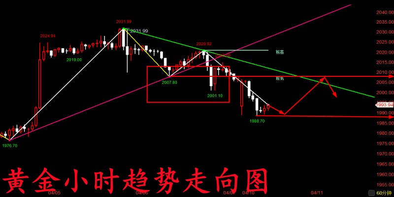 投资市场并不会简单的朝着预期的方向进行,通往成功的路都是曲折的,而一旦走反,则将会失去方向,进入了循环,行情也同样如此,趋势是一定的,但是绝对不会简单地朝着预定方向一直走,期间会出来曲折而动摇人的内心,这时候就需要好的心态来面对! 黄金技术面分析; 黄金昨天周四下探回升收高,最低回测三角区间下轨1955附近启稳,随后欧美盘也是回升收复失地,同时上破前一日高点,并且今天周五也是再度突破昨日高点,目前短线向上轨反弹确认当前阻力,在日线阴阳转换当中,暂时处于高位震荡修正,美元多空延续不定,也使得黄金短期单边能量不足,保持在高位拉锯修正。今日周线收官,目前处于区间2003-1935间的中性值位置,上