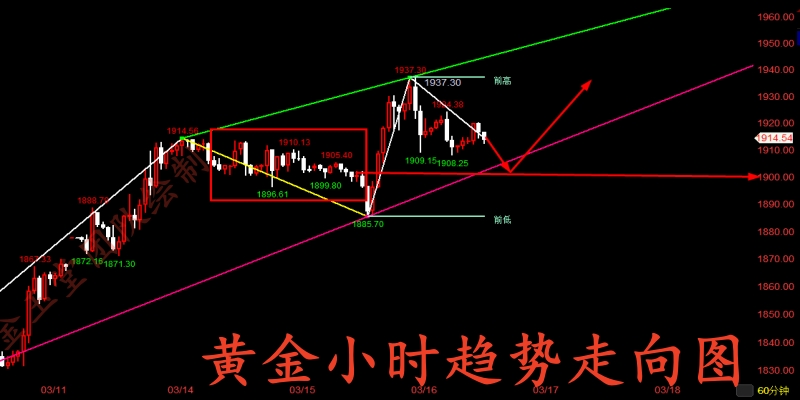 要知道没有一成不变的行情,也没有一成不变的投资者,黄金白银投资需要不断学习和调整。在交易的道路上,我们主要做的是紧跟趋势,跟随节奏,不管你昨天是盈利还是亏损,需要的是一个坚持。如果你在投资路上遇到了困扰,找不到方向长期处在亏损中,不妨可以和金玉堂交流一下,成功不是靠运气,选择大于努力! 黄金技术面分析: 现货黄金昨日周三亚市盘中开盘小幅下行缓慢走跌;欧市盘中,黄金扩大跌幅,刷新日内低位1885美元/盎司,但仅触及日内低位后立即回升反弹;直至美盘,受市场情绪影响,黄金收复千九关口,刷新日内高位1937美元/盎司,截止收盘,黄金再次上演回落,跌至1909.0美元一线后回升,收于1917美元/盎司