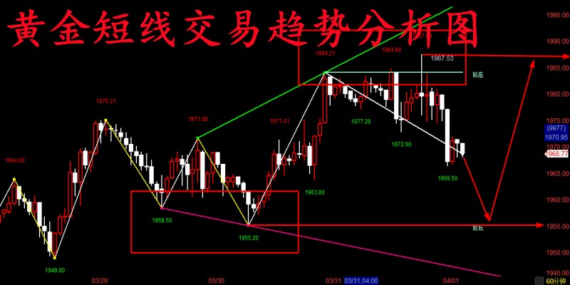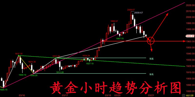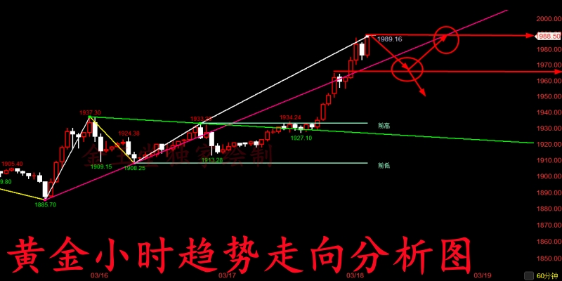 投资市场并不会简单的朝着预期的方向进行,通往成功的路都是曲折的,而一旦走反,则将会失去方向,进入了循环,行情也同样如此,趋势是一定的,但是绝对不会简单地朝着预定方向一直走,期间会出来曲折而动摇人的内心,这时候就需要好的心态来面对! 黄金本周周线收大阳柱,黄金本周初最高到1894价位开始回落,最低触及到1871开始反弹至1987一线,本周涨幅有116美金。黄金周一早盘直接跳空高开,随后开始回落,周二黄金区间震荡,受阻于1814一线回落,收下影线阴线,周三黄金触底反弹1937一线,日线收上下影线阳线,周四黄金回落1907企稳,随后拉升再次回落,日K线十字星收阳,周五亚欧盘走势慢涨行情,晚间美盘一