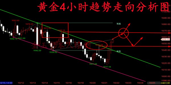 投资市场并不会简单的朝着预期的方向进行,通往成功的路都是曲折的,而一旦走反,则将会失去方向,进入了循环,行情也同样如此,趋势是一定的,但是绝对不会简单地朝着预定方向一直走,期间会出来曲折而动摇人的内心,这时候就需要好的心态来面对! 黄金终于迎来了持续反弹走多的迹象,也算是基本摆脱了弱势行情的持续影响!从本周五美盘开盘来看,黄金在连续探底1618附近后便开始了疯狂上涨模式,直至停盘最终单边上涨了近40个点,可谓是最近几天以来最大的一次涨幅!通过这一次单边上涨的行情中,也是彻底将技术面全线带向了多头趋势中,而接下来一旦黄金再度突破上方重重压制,相信多头的曙光会持续被照亮! 从技术面来看,随着周五