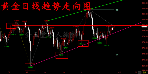 投资不是一朝一夕的事,前期的****损,不代表后期的****损:前期的获利,不代表后期的获利。所以,****损的朋友不要气馁,获利的朋友不要自满,让自己以平和的心态理性的投资。在这个千变万化的市场中,行情的涨跌不是靠个人主观意志所决定的,而是充斥着多于空的搏杀,胜利与失败则时刻伴随左右,但有一点,行情的趋势将会决定未来走向,定势,选位,控仓,成功三部曲,所以,选择远远大于努力,择良师,将会获益匪浅,而我,一直都在。下面本人简单给大家分析接下来黄金如何布局: 黄金从今天的行情来看,仿佛短线多头还是比较强势的,并且从昨天美盘最低触及1802关口反弹以后,黄金也是来回经历了几次短线回调,不过最终也