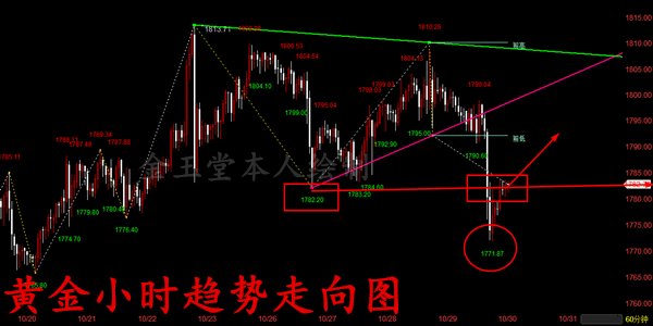 每个人都有一本人生账簿,记录着美好与不美好的事情。随着年纪增长,那些不美好的东西会被慢慢划去,留下美好的东西。过分地计较得失,只会让自己畏手畏脚,做事情更加有压力。就像握在手中的沙一样,越是用力握紧,它就越是快速流失。反而你不动它,留在手里的沙会更多。凡事不必太过苛求,来了就来了;遇事不要皱眉,笑了就笑了;结果不要强求,做了就对了。 黄金本周的行情已经全面结束,而本周黄金的多空波动可谓是非常的激烈,周一到周四,黄金是向上突破不了1810,向下突破不了1782,结果终于在周四再一次试探高位突破无果的时候,周五迎来了全面爆发,黄金一度跌破1782关口,最低也是去到了1771关口后才开始企稳震荡,