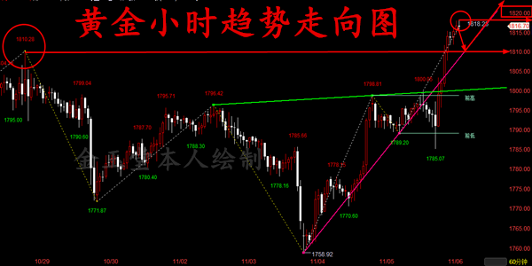 行情就是一个大舞台,不是所有的故事都可以陈述,人是需要的某种信念来激励和约束的,人静而后安,安而能后定,过去,在无憾中微笑,才美丽;博弈,在眼泪中微笑,才多姿;成败,在坚强中微笑,才精彩!有因有缘集世间,有因有缘世间集;每一波行情的出现市场都会究其原因,看懂者永远成为市场赢家。不要总以为行情辜负了你什么,在这个市场,没有谁活得比谁容易,交易简单就迷人:往往许多行情都如此,当你刻意追逐它时,它就会跑得飞快,当你摒弃表面的凡尘杂念,为了策略,为了计划,专心致力与每一波行情时,有些利润反而能轻易地得到。 黄金上周的多空波动可谓是非常的激烈,上周一到周四,黄金是向上突破不了1810,向下突破不了17