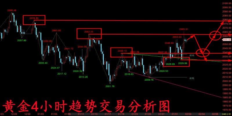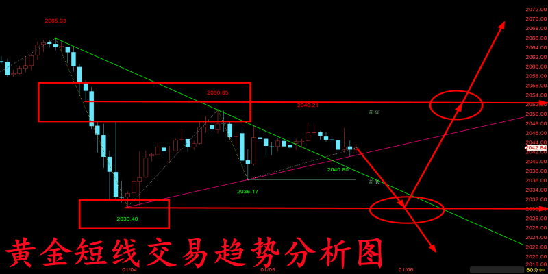 今天周五重点就看晚间非农数据公布情况了,在数据前行情基本就暂时看2062-2040区间来回震荡修复,非农数据后具体在看数据表现,数据利多,上方则看2078,数据利空下方则在看2030! 昨日周四黄金在2065-2030区间中波动,虽然复盘看比较简单,但其实际走势比较复杂,亚欧盘先在2050附近便开始下跌,最低在2030关口企稳,将近跌了20美金,美盘则在2030附近上涨,第一波最高在2050,第二波则是回落到2040再次走高至2065,说实话,第一波在2030开涨很容易看出来,但第二波急跌至2040后再次暴涨比较难以做出有效交易,除非选择无脑追单。 黄金自美盘暴涨后再经过午夜的回落调整,而午