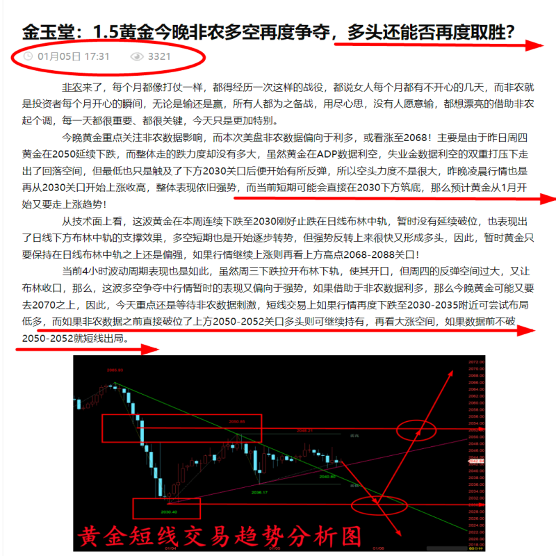 非农来了,每个月都像打仗一样,都得经历一次这样的战役,都说女人每个月都有不开心的几天,而非农就是投资者每个月开心的瞬间,无论是输还是赢,所有人都为之备战,用尽心思,没有人愿意输,都想漂亮的借助非农起个调,每一天都很重要、都很关键,今天只是更加特别。 今晚黄金重点关注非农数据影响,而本次美盘非农数据偏向于利多,或看涨至2068!主要是由于昨日周四黄金在2050延续下跌,而整体走的跌力度却没有多大,虽然黄金在ADP数据利空,失业金数据利空的双重打压下走出了回落空间,但最低也只是触及了下方2030关口后便开始有所反弹,所以空头力度不是很大,昨晚凌晨行情也是再从2030关口开始上涨收高,整体表现依旧