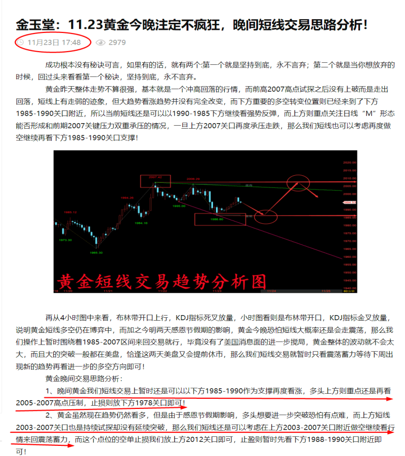 随着感恩节假期的落幕,黄金也是成功收盘,而值得注意的是,由于感恩节假期影响,行情虽然波动不大,但是周四周五两天日线都是收的一根阳线,并且周五收盘后周线同样也是收取的一根阳线,再结合4小时趋势来看,黄金当下大趋势依然是看多的,所以下周黄金再度试探突破上方2005-2008关口的概率很大,而一旦进一步突破上方2008高点并且延续走多,那么我们毫无疑问将在看前期更高点2010关口上方了!当然,如果下周市场开始出现探顶洗盘走单边下跌,我们在根据行情实时的波动来考虑再度布局空单交易即可! 那么下周我们短线交易上需要重点关注的交易点位暂时就需要看1985-2005这两个上下多空分割的位置,如果行情突破2