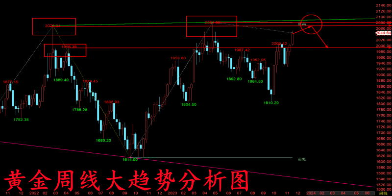 本周,整个黄金市场多头一片沸腾,金价从周一的2000关口一路飙升到2050关口,多头来势汹汹,但终究也有走完的时候,当前上方关键阻力在前期高点2052-2070关口,此时想要做长线空的重头戏已经来临,目前可以开始小仓位分批尝试,2050-2070区间长线看空,保护止损2090,目标首先还是向下看到2000关口! 昨天我们文章给的是2005-2008区间看多,可是行情迟迟给不到,最终果断在2012关口进多,最终在2020获利8美元出局,持续拿下多单利润! 今天黄金短线思路还是先看多,暂时关注早间起涨点2041-2035区间去做,目标还是先看上方2048-2051一线关口,目前需要重点注意黄金、