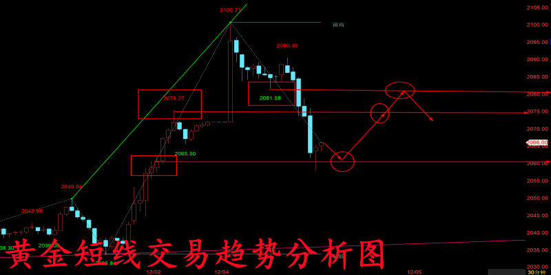 上周五晚间的美联储讲话中试图回击投资者对2024年上半年降息的强烈预期,但市场反弹更猛烈了,降息预期也进一步提前,导致黄金上周五在突破2050后加速反弹,收盘前最高已经触及2075一线!而今日早间开盘后金价更是直接开盘爆拉,盘中最高触及2144一线,大幅高开超70个点,随后一直到下午4点前全天都维持震荡走低局面,而目前相对于日内高点已经大幅回撤超80个点,所以当前市场整体区间波动过大,金价这也是明显的多头获利了结的走势,过大的区间对于我们进场点位的要求就更加高! 金价早间第一波回撤止跌点在2086-2087一线附近,而目前金价也是再次下跌进一步走低,下方关键支撑已经来到了2050,短期支撑在
