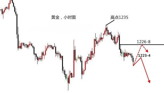投资的过程就像一杯没有无糖咖啡,喝起来是苦涩的,却回味无穷。有赢亏才是行情,盈亏就像过山车,兼备高峰何低谷,这意味着,眼下的好坏,只是暂时的。市场亦不会在乎你的感受,它既不会在你得意洋洋的时候捧你,也不会在你垂头丧气的时候安慰你。所以交易市场并非适合每个人。如果你不愿意接受现实,不愿意承认自己的弱点,恐惧和失败,你就不会成功。 黄金,下来了不知道可不可以说是惊喜,毕竟在原本的计划中应该向上触及1238附近的趋势线上阻力再进行回落,结果比预期更弱,在早间冲高1234-5之后直接下跌,这一路有震荡下跌的趋势,在美盘前迎来加速,原本计划的多单取消进场,实盘于1226反手,后小赚出局,也算是抓到了一