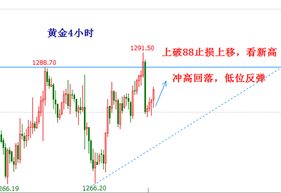 黄金昨日收小阳线,最低1279,最高1288。昨日1280附近低多的策略1287出局小有斩获。从盘面看,黄金在1266形成双底的结构依然没有破坏,黄金继续存在上涨的动能。不过周四的阳线显示上涨的力度不是很强,所以想一鼓作气攻上去的的概率较低,以震荡向上的思路对待吧。 从日线来看,目前上涨也确实逼近了日线压力位,阻力非常大,关键阻力在1292附近。如果黄金能继续向上突破日线阻力的话,年内有创新高的可能性。但是如果不突破的话,震荡后还将继续新低。恒金对于后期突破日线阻力压制保持乐观,因此继续看涨向上突破。今日操作继续执行低多,在1280附近做多看涨! 本文由资深分析师恒金解盘独家策划发布,从事股