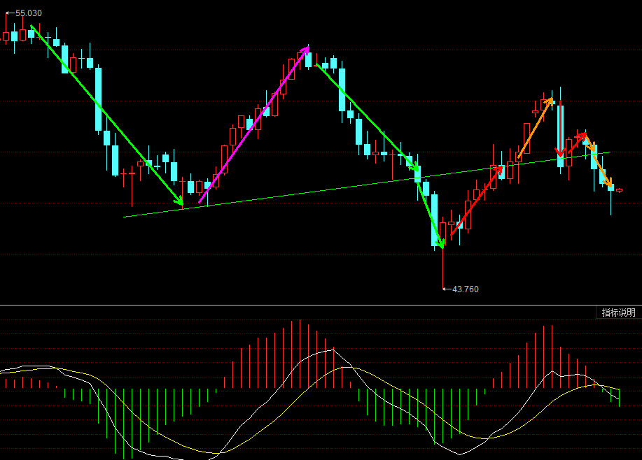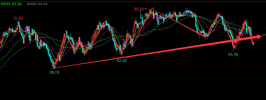 行情回顾: 在周三EIA数据公布大幅利多行情上涨到昨日高位49.14一线,而晚间油价大幅下跌,直接跌破48美元一线,今日早间开盘上冲48一线后受阻,油价再次下跌,欧盘上市油价跌破47.60一线,直逼下方47美元一线,随着行情跌破47美元一线后行情再次惯性下跌到低位46.72一线止跌,本人在晚评中提到46.70一线多单,那么46.7
