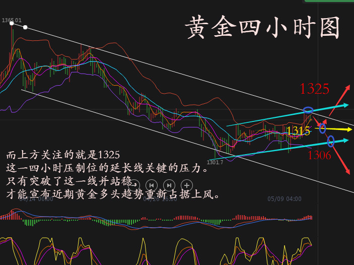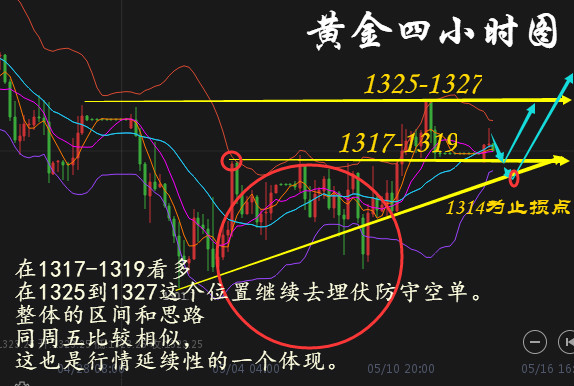 我们做投资心态决定状态,心胸决定格局,眼界决定境界。不要带着昨天的心情做今天的行情,不要因为一时的亏损而萎靡不振,也不要因为一时的盈利而忘记曾今的伤痛。长期理财、有规划性的投理财才可走的更远,更踏实! 黄金 从大周期4小时走势来看,周五冲高回落,虽然破1325,但凌晨走出大幅回撤,那么需要谨慎对待,多一点理