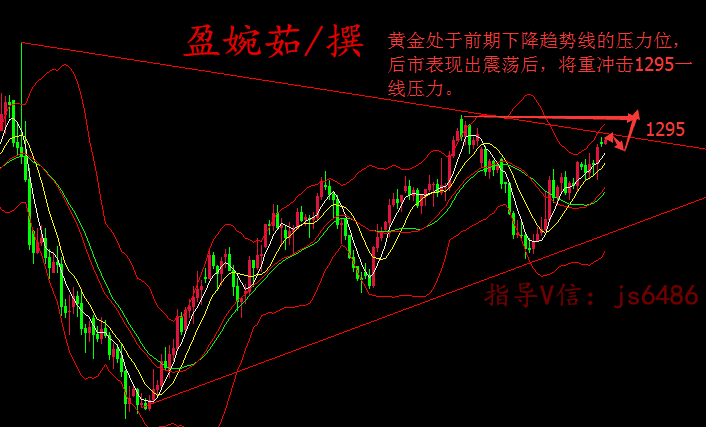 盈婉茹:6月6黄金稳坐1280,迅速进场抢红利 继非农之后,本周黄金整体波幅并不算大。目前日图上,黄金的价格处在了前期形成的下降的压力线附近,单从技术图中来看黄金价格短期内将走出几日的小幅震荡,然后冲击1295的压力。如何得出此结论,主要根据以下几点的判断。 第一 ,随着美联储6月政策会议的临近,金价走势会有一些