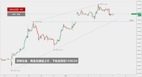 回顾下本周(8月28日-9月1日)的行情,周一朝鲜导弹发射导致金价大涨,周二避险大涨之后冲高回落,周三行情1305-1313小幅震荡整理,周四美国通胀数据表现继续疲弱推动金价上行逼近周二高点1325美元,周五整个亚欧盘一直维持1319美元上下不到两美金徘徊,美盘在非农数据利多的影响下,金价短线拉升至1328美元后急速下挫,最低跌