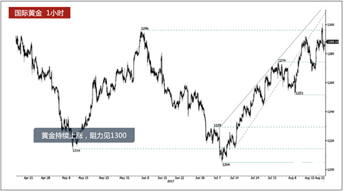 近期黄金市场受其的影响主要还是来源于避险需求和即将到来的全球央行行长会议,近2个月时间里风险事件频发,例如特朗普政治乱局、地缘政治问题、巴塞罗那恐怖袭击等,这些风险事件都对黄金形成短期的利好。加上本周初的美韩军事演习,或将美朝关系推向战争的边缘,将半岛局势进一步恶化,使得黄金可能在未来的几个月里都将处