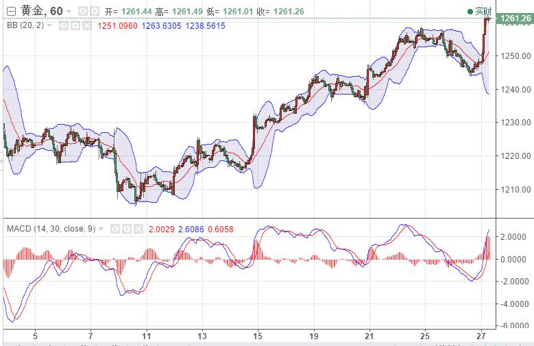 三周连涨,再创新高,上行轨道完好,强势格局依旧!美国季度GDP的小幅下滑,朝鲜意外试射导弹引发危机,委内瑞拉局势愈加紧张,风险事件的集中聚集最终在上周尾盘时段得以让黄金借势爆发,盘中最高触及1270美元。相比于强劲的升势,最终稳固住涨幅才是要将市场方向延续下去的关键。诸多利好支撑,黄金避险爆发,周初时段进一