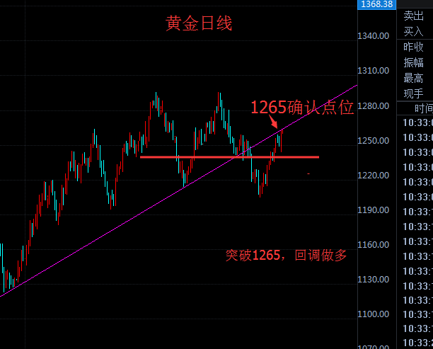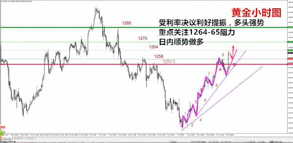 就昨日的行情来说,黄金受阻于1259美元附近的阻力并未能成功破位,那么意味着金价短期的多头走势难以延续,黄金自1205一线反弹以来,基本没有出现什么回撤的行情,都是以震荡上涨为主,而目前黄金在1259附近受阻出现回撤,虽然目前回撤的幅度非常小,但上涨的势头已经有所放缓,倘若此刻出现一波较大的回落行情走出,苏野相