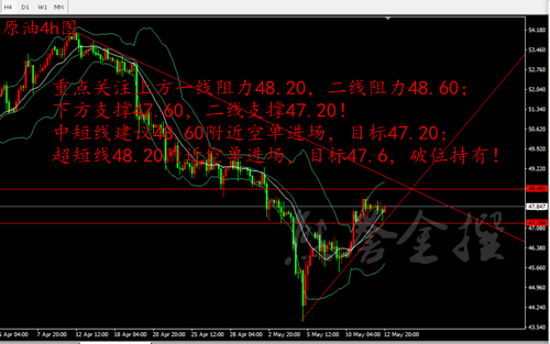 文/熊誉金 熊誉金:5.16原油黄金走势分析操作策略,空单被套如何解套? 原油走势分析,操作策略 原油整体呈现慢涨的行情,整理刷新昨高,日图有望进一步连阳,保持看多至美盘进一步走高日线最终录得大阳柱,价格有效企稳下方支撑48.6上方!从K线形态来看,收了一个看涨吞没的形态,多头力量充足。4小时图上来看,K线在触底