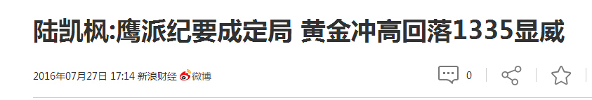 国际现货黄金走起了预期,现货黄金不顾华丽数据使劲往上攀升;冲高回落是必然的,具体依据以及分析陆凯枫晚间精评《陆凯枫:鹰派纪要成定局 黄金冲高回落1335显威》文中也提及过,晚间行情一定会试探1328-1330附近一线,如试探1330破位成功,1335即可见,之前1340、1350、1360等等深套的朋友们可以都可以关注公众号陆凯枫获