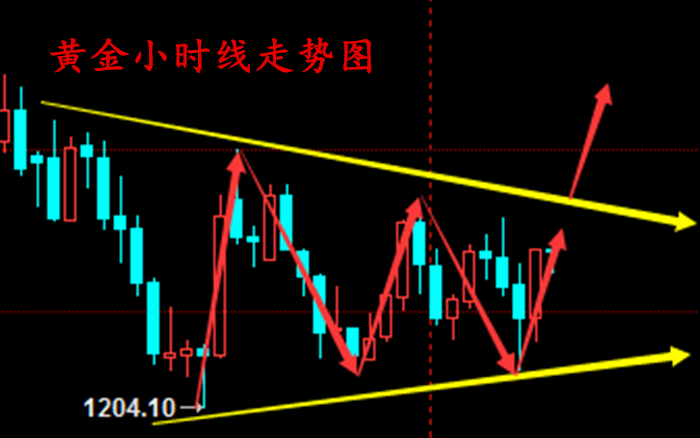 许羿杰:8.9黄金低位苦苦挣扎,多头或差龙门一跃 自从入了这行后,作息不规律成为了我的作息习惯。但是不管作息有多么不规律在做人做事上我们不能马虎。所以个人比较讨厌那些不讲规矩之内,无规矩不成方圆,凡事都有一定的准则去遵守,如果人人都游离规矩之外,那岂不是都乱了套。所以那些不听建议自行操作的朋友既然道不同,那就不相为谋吧。 黄金的行情只能用两个字来形容:熬人。刚从1204到1235的震荡完后又陷入小区间1204至1216的来回洗盘,形成了出行情的前奏—三角收敛区间震荡(如小时线走势图)。所以提醒一句,目前持仓的朋友尽量处理单子保持空仓,逼近三角震荡的利润空间也不大,但是走出行情后的风险很大,没