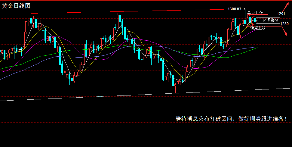 堪萨斯城联储将在杰克逊霍尔主办年度政策研讨会,今年会议主题为促进变化中的全球经济,这将是金融市场人士观察各央行政策动向的好机会。届时美联储主席耶伦、欧洲央行行长德拉基将发表讲话,会议持续至8月26日。 本周1280-93的区间高低点始终没有突破,昨天只在1282-1291的震荡,十美金还不到,到了周尾应该会很难维持,12