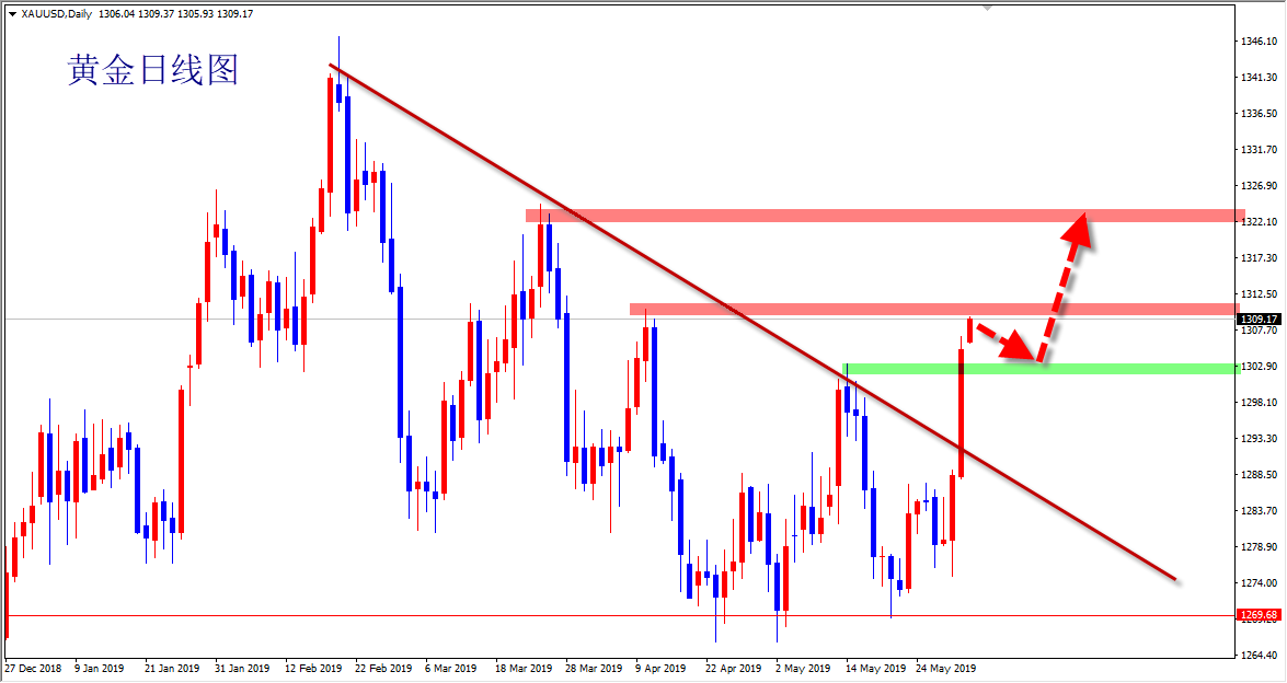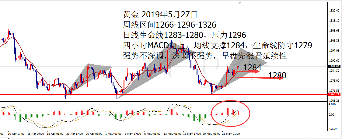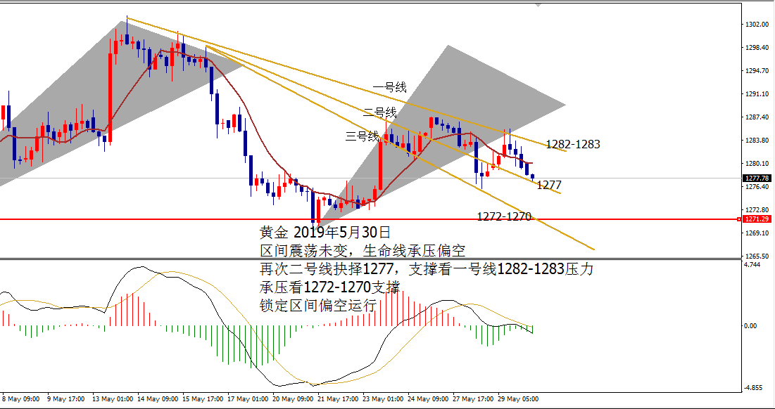 周二(5月28日),现货黄金转跌,有望结束之前三个交易日的反弹,因中美贸易摩擦还在僵持当中,美国与日本的贸易紧张关系也在酝酿中,美国经济面临更大潜在冲击,美元仍受到避险买盘垂青。不过这无法证明美联储通过降息来应对相关风险是正确的做法。金价周二从前一交易日触及的一周高点回落,受美元走强拖累,因美元是投资者在中美贸易关系紧张前景不明朗之际的首选避险资产。目前市场上最重要的力量是贸易紧张局势,我们再次看见,美元得益于避险资金,而不是黄金,金价要达到1300美元的水平将是一个非常困难的障碍,或者美元走强开始放缓之前,这种情况要到今年晚些时候才会出现。 从技术面上来看,目前金价暂时在1280附近震荡,