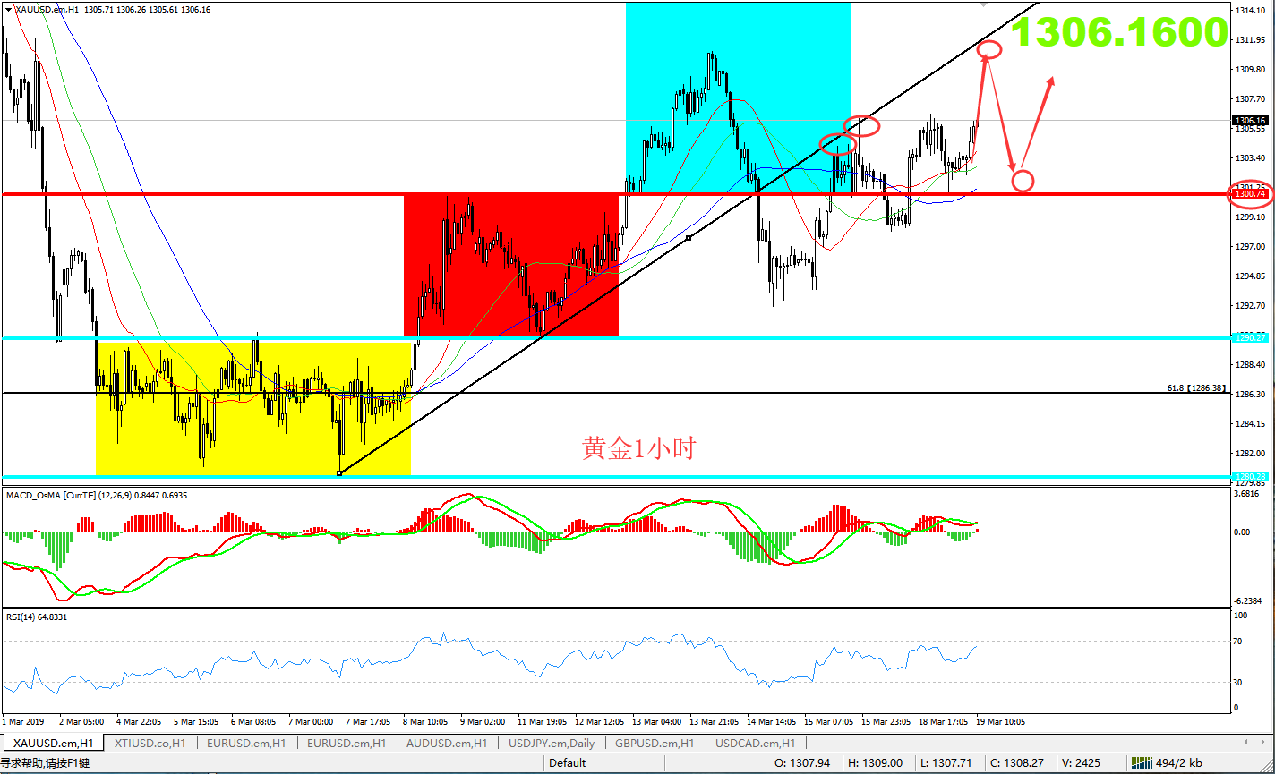 周二(3月19日)现货黄金先跌后涨,现报1305.79美元,涨幅0.15%。受市场普遍预期美联储将放鸽以及英国脱欧前景仍存在不确定性,黄金近期受到了支撑,但是总体而言围绕着1300美元反复争夺,因市场在美联储利率决议前持谨慎立场。但市场人士警告称,今年年初以来美联储变得更为鸽派,此次利率决议美联储可能会再次不及预期鸽派,进而重蹈二月美元大涨的走势。此前因贸易乐观情绪,近期全球股市持续走高,也在一定程度上打压了黄金的买需。贸易局势的变化在未来相当长的一段时间都将会对金价走势产生直接的影响。 近期黄金围绕着1300美元一线反复争夺,因市场在美联储利率决议公布前持谨慎立场。不过周一(3月18日)欧