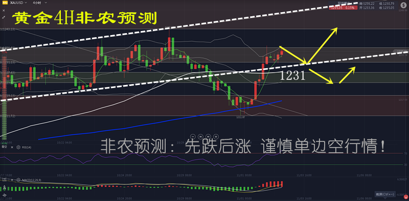 代玖阳:11.5周一黄金看多不追多,高位继续空 人生是一场长途的跋涉,走久了,才会知道心酸,才会知道艰难,才会有坚韧,才会有渴望。前方的路,尽管遥远,尽管颠簸,但却脚步依然,追求依然,方向依然。 1黄金: 美国“大小非农”均传喜讯 美联储12月加息已定? 上周美国公布的一系列数据均表现靓丽。周三公布的10月ADP就业人数录得8个月来最大增幅,而周五公布的美国10月非农就业人口录得增加25万人,远超预期的增加19万人。此外,美国10月失业率录得3.7%,续刷1969年12月以来最低水平。美国10月平均每小时工资年率也录得3.1%,创下2009年4月以来新高。路透认为这表明就业市场进一步收紧,将