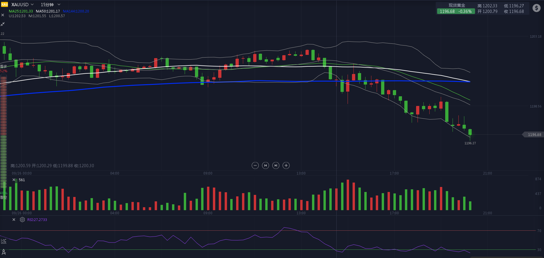 代玖阳:9.26加息近在眼前黄金踌躇,原油晚间API 周二美元小幅走低,最低跌至94.02,黄金则再度站上1200关口;特朗普称将对伊朗实施更多制裁,闻讯美油最高上至72.72美元/桶,布油最高达82.52美元/桶。 展望今日,市场翘首以盼的美联储利率决议即将解开神秘面纱,虽然9月加息已被充分消化,但决议中还有这两点值得重点关注!新西兰联储也将接力登场,或再遭纽元大行情?API数据意外录得增加后,油市看涨情绪能否撑过EIA库存这一关? 1今日黄金行情走势分析: 黄金昨天一整天总共只走出5美金的震荡空间,亚欧盘行情波动比较小,目前来看,金价震荡在1200一线,结合昨天的日线低位十字星和日线级别