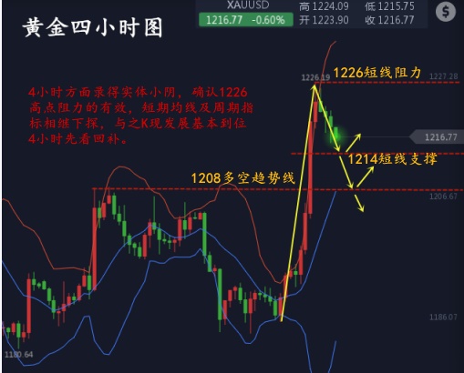 周一,黄金续跌逾18美金,因上周五公布的非农数据意外不及预期利空。加上美元指数延续升势,是打压黄金的一个因素。黄金的上涨趋势不强劲,金价目前依旧交投于关键阻力下方,而美指(95.9484,0.3207,0.34%)守稳95关口,这可能会在一定程度上限制金价的涨势。本交易日,美国国务卿蓬佩奥将访华,而这可能对中美贸易关系产生一定的影响,从而影响美元、黄金以及其它商品等走势。 考虑到近期美国经济数据非常强劲,美联储官员的讲话也普遍偏向鹰派,市场对美联储2019年加息次数的预期有所增加,美债收益率涨至多年高位,这些也都对金价不利。 上周黄金虚破底部支撑反弹后受阻1208一线。金价若不能企稳在此关键
