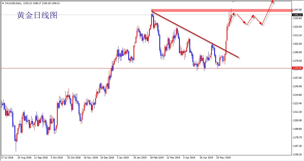 什么样的行情才是最难做的行情?明明看着行情在涨,可就是鼓不起勇气跟上节奏,总在反复究竟与犹豫中与你的利润失之交臂,除了一声叹息,什么都没有改变,亏损的账面依旧有一个大写的的负号刺激着你。如何能改变这种凌乱的操作节奏,把握错失的利润,希望致诚的分析能够帮到你。投资朋友如果在投资中遇到任何问题,都可以找到致诚。我带你先盈利20%再谈合作! 全球贸易紧张局势并未结束;中东因沙特油轮在阿曼湾遇袭,使得中东局势再次升温;黄金受益避险因素的支撑而强势走高。除此之外,市场对于美联储年内降息的预期在不断是升温。美国总统再次抨击美联储,表示美联储的利率太高了。黄金众多利多因素的支撑下,强势的上涨,最终触及到1