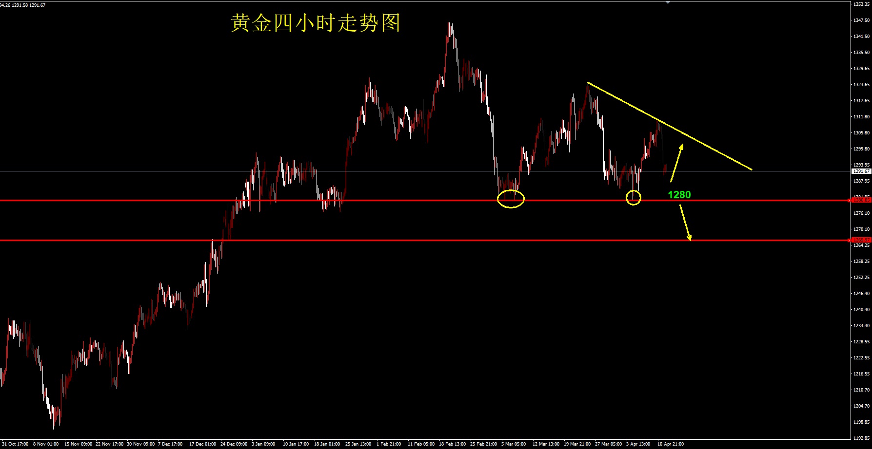 我们做的是投资,是以赚钱为目的,不是投机,所以都必须要有操作的理由。我们要顺势而为,安稳赚钱,把握机会,稳健获利,这才是真正的投资取胜之道!投资朋友如果在投资中遇到任何问题,都可以找到致诚,我带你先盈利20%再谈合作! 上周是近期数据最少的一周,同时由于耶稣受难日来临,市场资金保持谨慎,导致黄金波动幅度收窄,全周运行着震荡空头结构。周一黄金直接走弱下行测试1280区域支撑,日线以探底回升的小阴线收线;周二延续弱势直接走弱,打破关键节点1280奠定空头格局,日线以中阴线收线;周三上行测试关键节点1280受阻,日线走出冲高回落的走势,以小阴线收线;周四下探1270平台企稳,小幅反弹,日线以小阳线