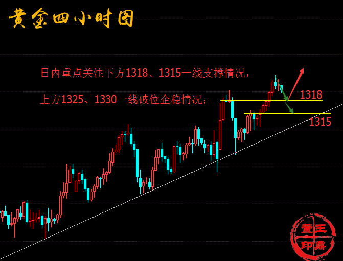 王鼎萱:3.26黄金走势分析,一招辨别大趋势利润! 行走在投资一线的朋友,下午好,我是你们的老盆友王鼎萱,人生在世,难免会遇到负面能量的时候,没必要把这些放在心上,心宽体胖,可以腾出心来做其他更重要的事儿,而不是一直在无谓的事情上耗着。如果你的心胸和眼界开阔,别人在无奈时,你就会释然;别人在恐慌时,你就会勇敢;别人在无知时,你就会清醒。这样才能大事化小,小事化了,把人生慢慢拓宽。 言归正传,下面好好的听鼎萱分析一波黄金行情! 黄金技术分析,今日盘面布局需注意这几点: 1、昨日黄金多头重返1320水平,涨势得到巩固,技术面得到进一步改善。黄金整体走势较为强劲,随着美指反弹势头暂停,且市场避险买