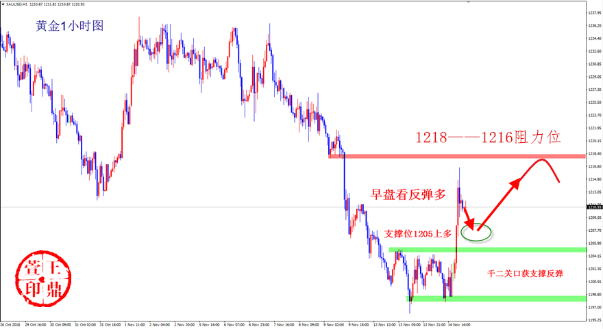 王鼎萱:11.15黄金空头还没散尽,多头稍安勿躁,套单有何良方? 一声梧叶一声秋,一点芭蕉一点愁,三更归梦三更后。 人生贵在一个“耐”字。要承受得住:耐冷,世态炎凉,要随遇而安,坦然处之;耐苦,面对苦难,百折不挠,终有云开日出时;耐躁,心静如水,不为钱权利所累,笑看云卷云舒;耐烦,宰相肚里能撑船,他人气我我不气;耐忙,有点忙碌是个福,免得无聊;耐辱,受点诽谤也是福,免得骄傲。 ——黄金先别盲目看涨,空头还没散尽:—— 今日亚盘,金价小幅回跌至1208一线后走反弹,目前反抽至1213一线,日线阻力关注1214-1216区域,下方支撑留意1208,跌破继续看1200关口,隔夜黄金虽然反弹