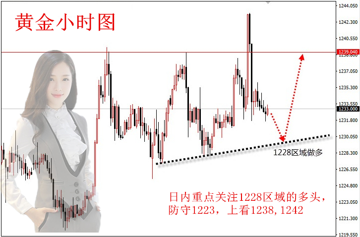 王鼎萱:黄金震荡上行,套单不是小事,日内黄金走势与布局! 只有当潮水退去的时候,才知道是谁在裸泳。是否有时候你做空他就涨,你做多他就跌,我觉得这不是偶然,这是必然,因为你做单没有系统,凭感觉交易,那能不输吗?不管你的人生有多么的成功!你都还需要一位人生的教练来鼓励你!激励你!提醒你!古代的皇上有军师丞相!企业老板有顾问!运动员有教练! ——美指,黄金波动的新宠:—— 上周在在美股接连暴跌和地缘政治危机持续发酵的背景之下,资金疯狂涌入避险资产,黄金在上周五最高上冲1243.32,但是很快的失守回落到1238区域的下方,但是仍然录得连续三周收涨,创1月以来最长周连涨。 值得关注的是,在