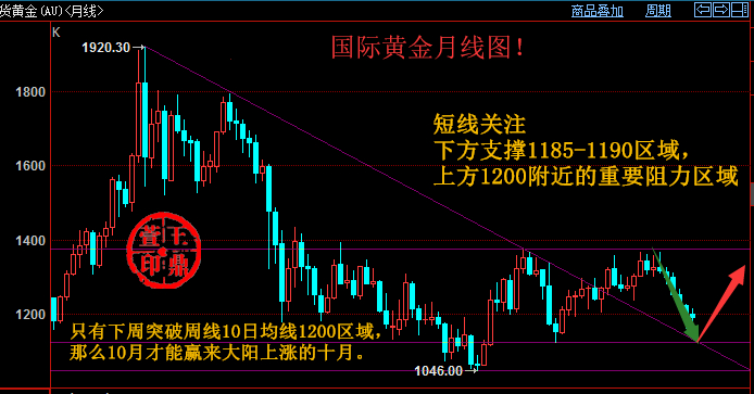 王鼎萱:9.29丢下所有小烦恼,下周黄金走势我来替你分析! 简单的喜欢最长远,平凡中的陪伴,最心安,懂你的人,最温暖。我们需要的是长久的安宁与偶尔的激情,希望的是长久的坦途与偶尔的磕绊,十一假期的到来,享受当下,最是美好。鼎萱也祝大家十一有个好心情,开开心心的玩,快快乐乐的去享受,忘记所有沉淀的小烦恼。 ——加息过后,黄金大趋势多空如何解决:—— 在连续震荡了一个月的黄金,终于在美加息之后走出了破位,但是这个破位也仅仅是换了一个震荡区间而已,从1190-1210,转移到1180-1200,虽然仅仅是下移了10个点,但是却有很多人已经乱了脚步。今天我们主要就是分析一下近期黄金的一个趋势走势。