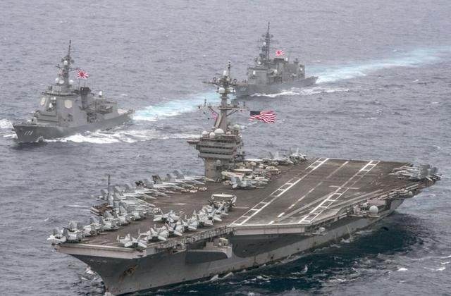 日本与美国1日起在日本海海域进行首次航母联合训练。按照日本媒体的说法,这是两国针对朝鲜导弹威胁的最新一场肌肉秀。 美国派出罗纳德里根号和卡尔文森号两个航空母舰打击群,日本出动足柄号驱逐舰和有准航母之称的日向号直升机驱逐舰。 这是首次有两艘美军航母参加日美联合军事演练。美国海军第七舰队却在社交网站上称,